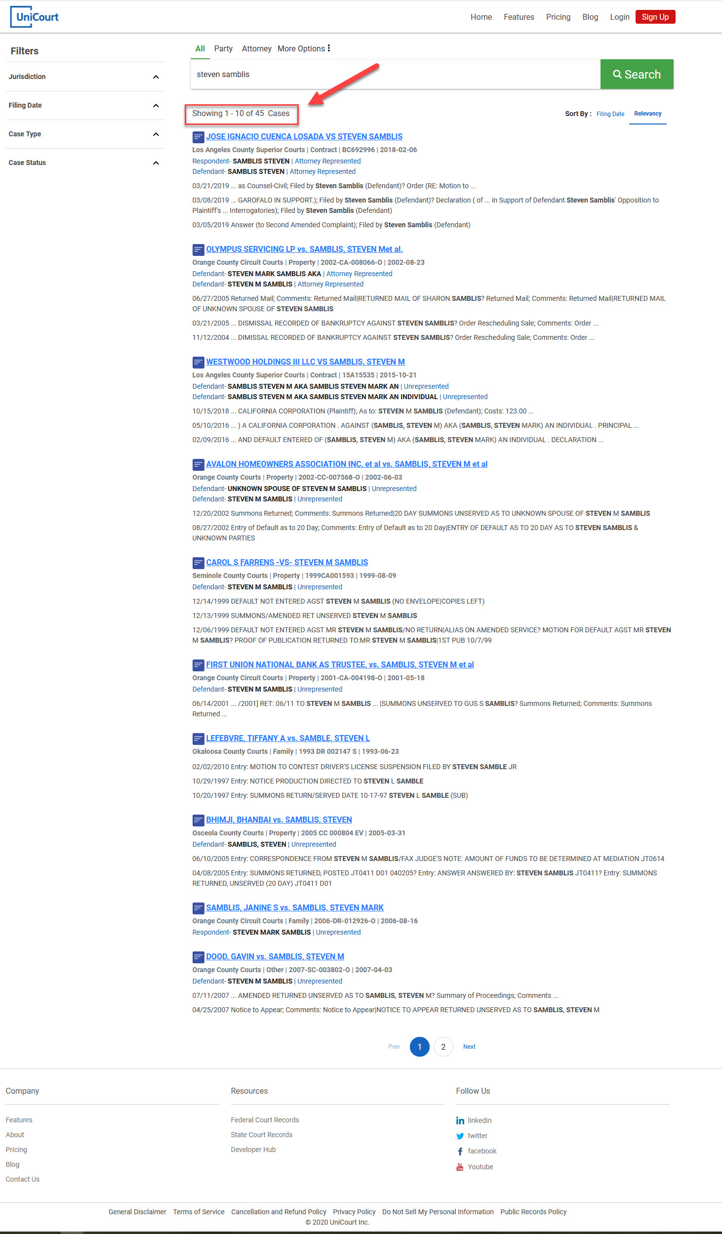 Mr. Steven Samblis has had more than his fair share of legal issues.  Most folks have none, and others have maybe 1 or 2... Mr. Steven Samblis has had 45 !  (As of November 2023 it's now up to 57).  Now, one or two lawsuits could be considered unfortunate, or bad luck.  However most people would consider 45 legal issues to be excessive, and signal a problem.  A "red-flag" if you will.  Certainly most folks would consider that high of a volume to definitely be a pattern.